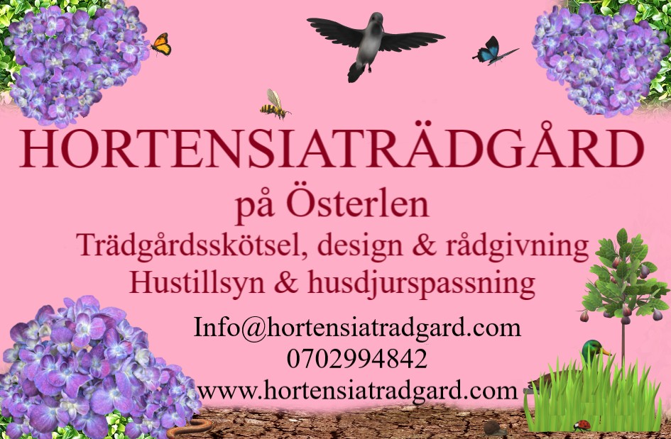 Jag som driver Hortensiaträdgård heter Hannah. Jag är utbildad trädgårdsdesigner och florist. Min trädgårdskarriär började hösten 2012 på ett litet företag utanför Vellinge och har sedan dess arbetat med trädgårdsskötsel och anläggning på olika trädgårdsföretag på Österlen, Ystad och Malmö. Även under dessa åren utbildat mig till florist och trädgårdsdesigner. Har också gått kurser i naturvårdande skötsel, riskträd, arbetsmiljö och motorsågskort.
